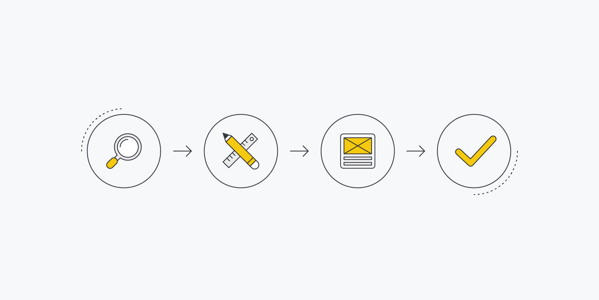 The UX process is everything that happens before a design is sent to developers to be built. It makes up the first few steps from research to prototyping.